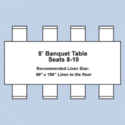 The 8 FT Banquet Table is a solid rental piece designed for gatherings large or small. With its generous length, it's perfect for seating guests, setting up dining areas, or creating a central event space that brings people together.